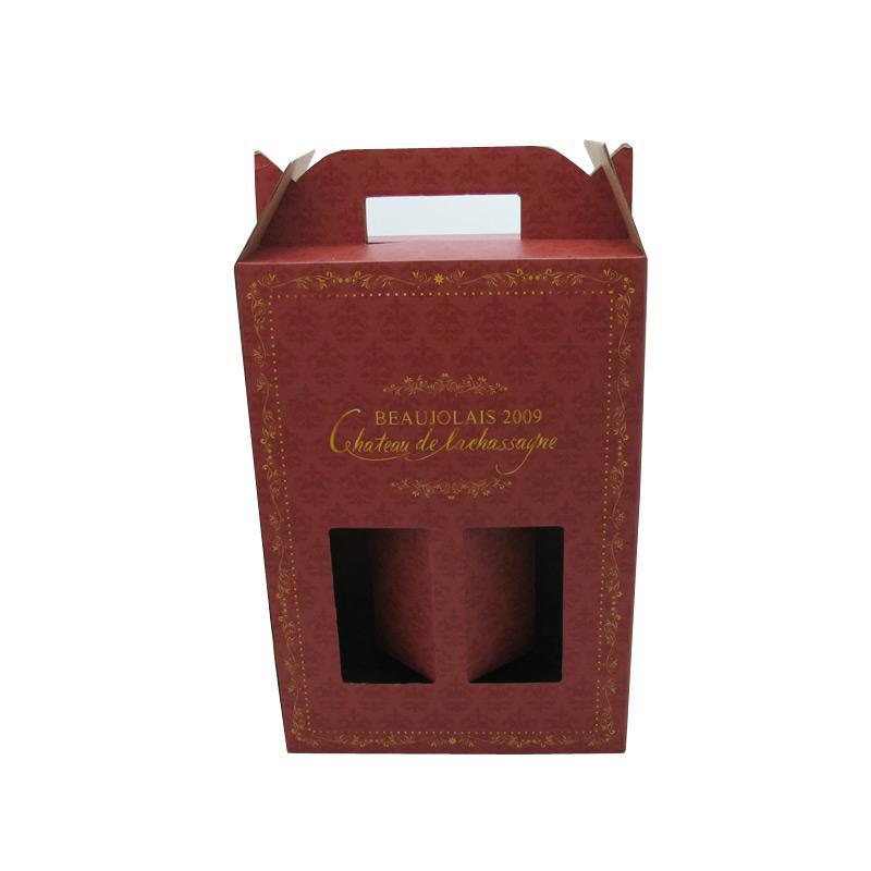 تتكون العلب الكرتونية مع مقبض من قفل سريع وإلغاء القفل في الأعلى وقفل أتوماتيكي وقاعدة إغلاق تطوى وتُضغط في مكانها ومساحات داخلية واسعة. إن الصندوق قوي بما فيه الكفاية لتحميل مواد أثقل مثل النبيذ وأدوات الأجهزة ولعب الأطفال وغيرها. إن العلب الكرتونية المطوية مثالية لتغليف النبيذ والكعك والحلويات والهدايا. يمكننا تقديم أفضل خدمة لتصميم الواجهة الختم بالرقائق الساخنة ونقش بارز ونقش محفور والتصفيح اللامع والمطفي متاح لمعالجة أسطح العلب.