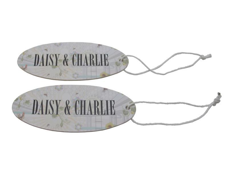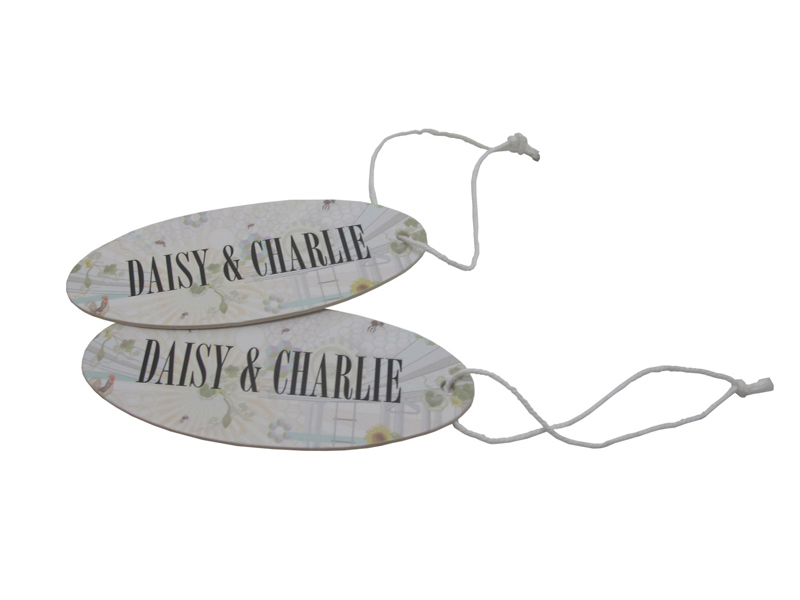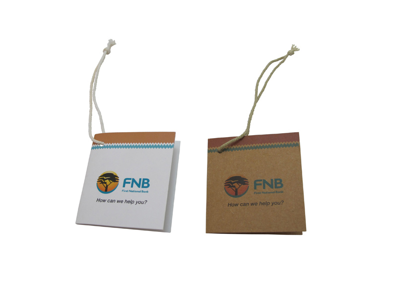 إن تاق الورق مصنوع من 350جم من ورق مطلي باللامع. يمكن طباعة كلا الجانبين مع أنماط ملونة ويمكن تخصيص الشكل لملائمة متطلبات العملاء.